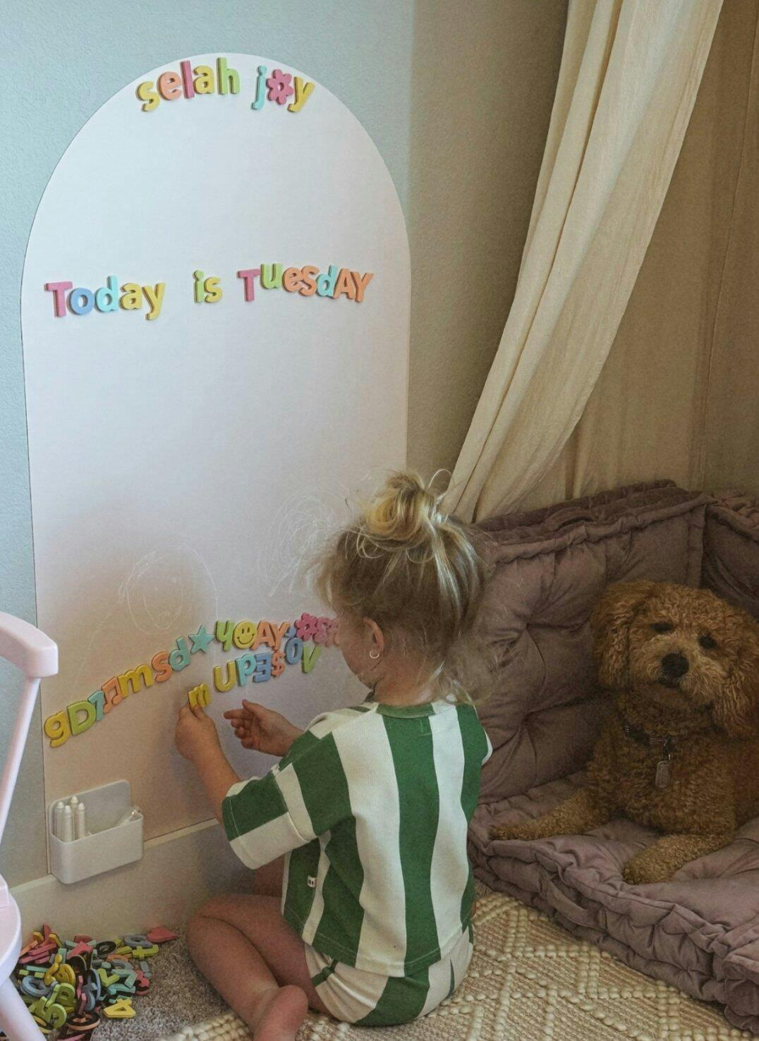 Cherrypick’s Magic Playwall is a multi-purpose, magnetic, art canvas disguised as an aesthetically beautiful wall decal. Transform your walls into the ultimate canvas of creativity for hours of open-ended, play-based fun!