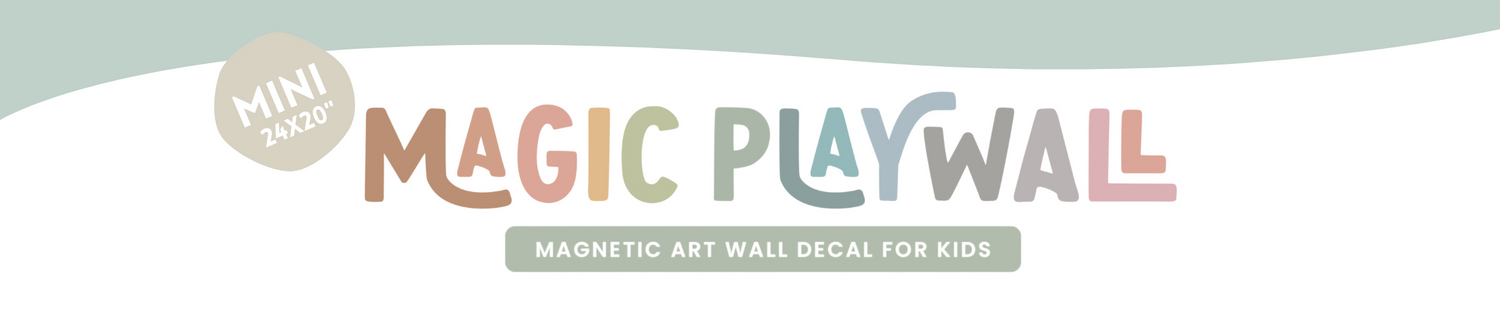 Our Magic Playwall is a magnetic board, whiteboard, and chalkboard all rolled into one multifunctional decal! Say goodbye to bulky and single-use easels and hello to space-saving, vertical play fun!