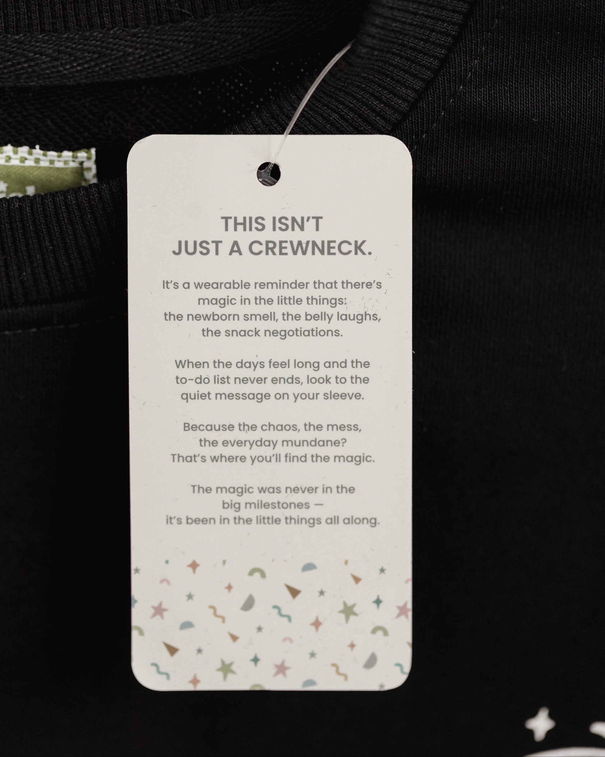 On the sleeve, you’ll find a small reminder for the days you need it most. Because between the chaos, the mess, and the endless to-dos, that’s where the real magic of motherhood lives.