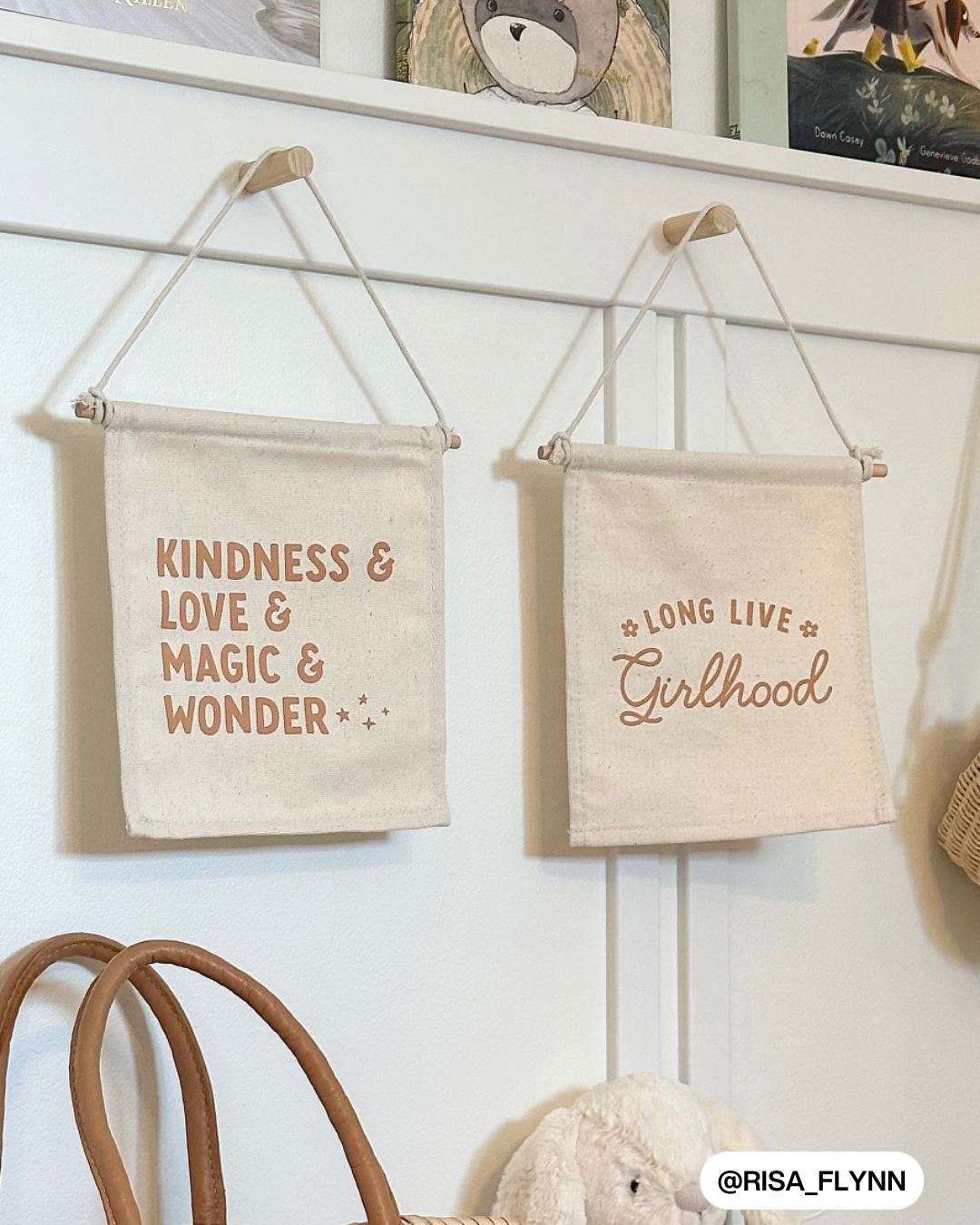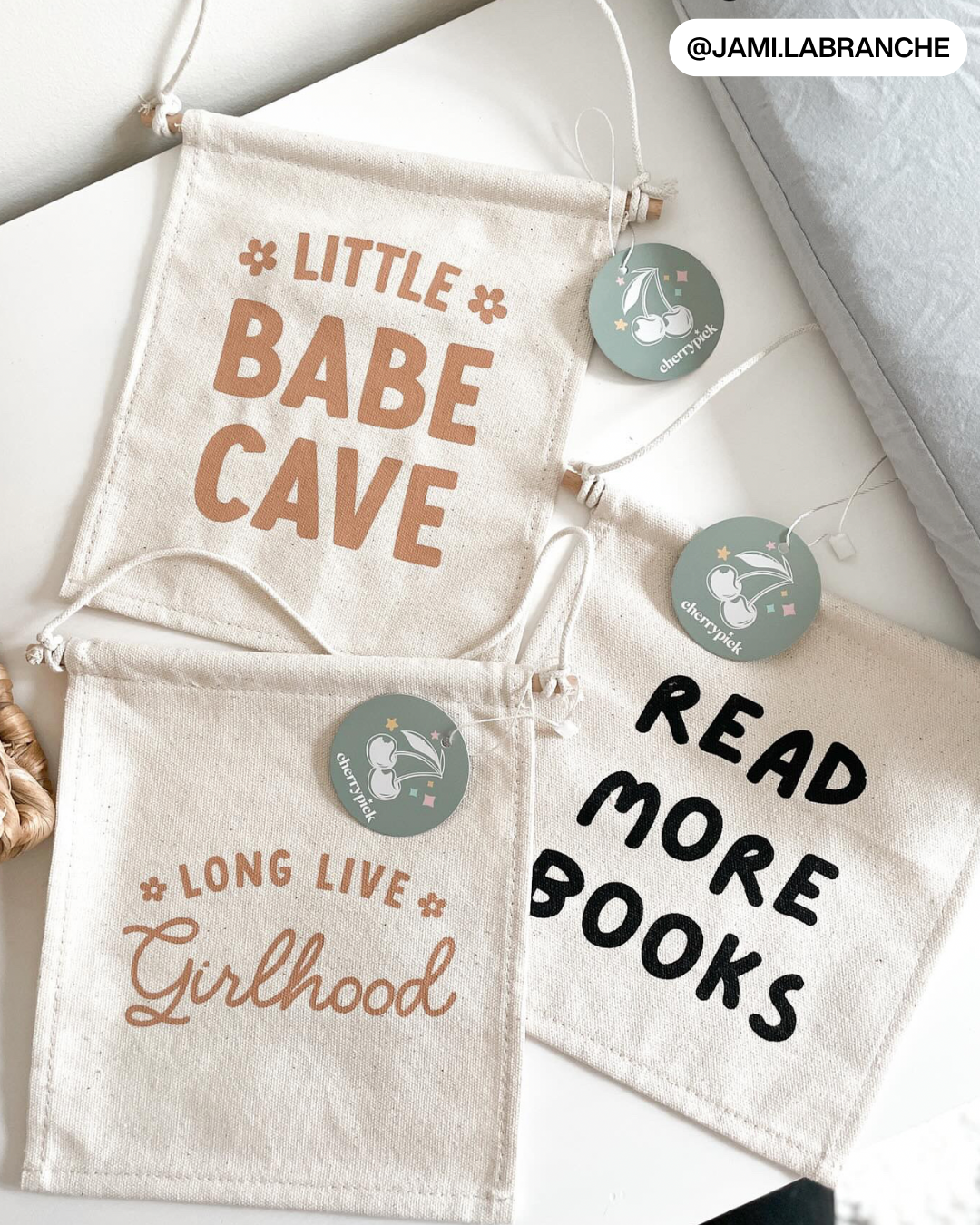 Cherrypick canvas hang signs are an easy and affordable way to decorate with minimal effort! Whether hanging on a wall, doorknob, bookshelf, or play space, our canvas hang signs add a fun and magical touch, making every space a happy place.