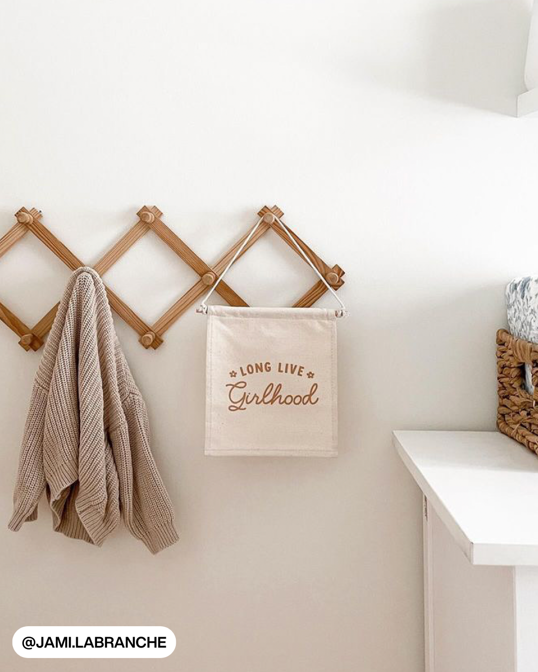Canvas hang signs come with a wooden dowel and cotton twine for easy hanging. We recommend using Command Strips for hassle-free decorating.