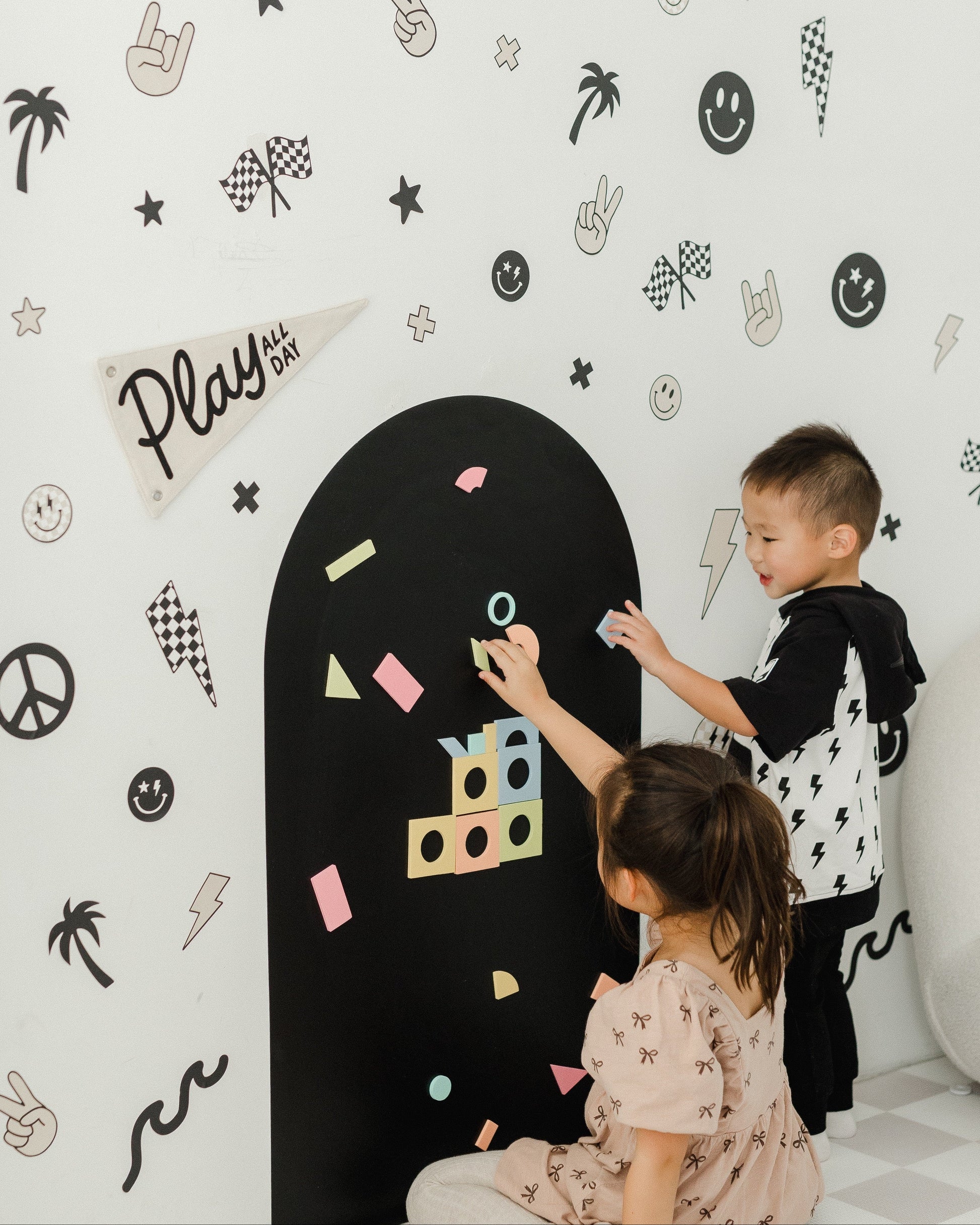Add a pop of personality to any room with our Peel & Stick Wall Decals. Designed to bring joy to kids' spaces, these reusable fabric stickers make it easy to refresh your walls with no wallpaper, no commitment, no mess.